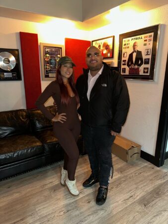 “Conheci a Ghabi enquanto trabalhava com Lomiiel, em uma colaboração entre eles. Logo percebi o quanto ela era talentosa e nos conectamos de imediato. Sua paixão e amor pela música são inegáveis, e foi por isso que a convidei para a sessão no estúdio do Pitbull”, revelou.