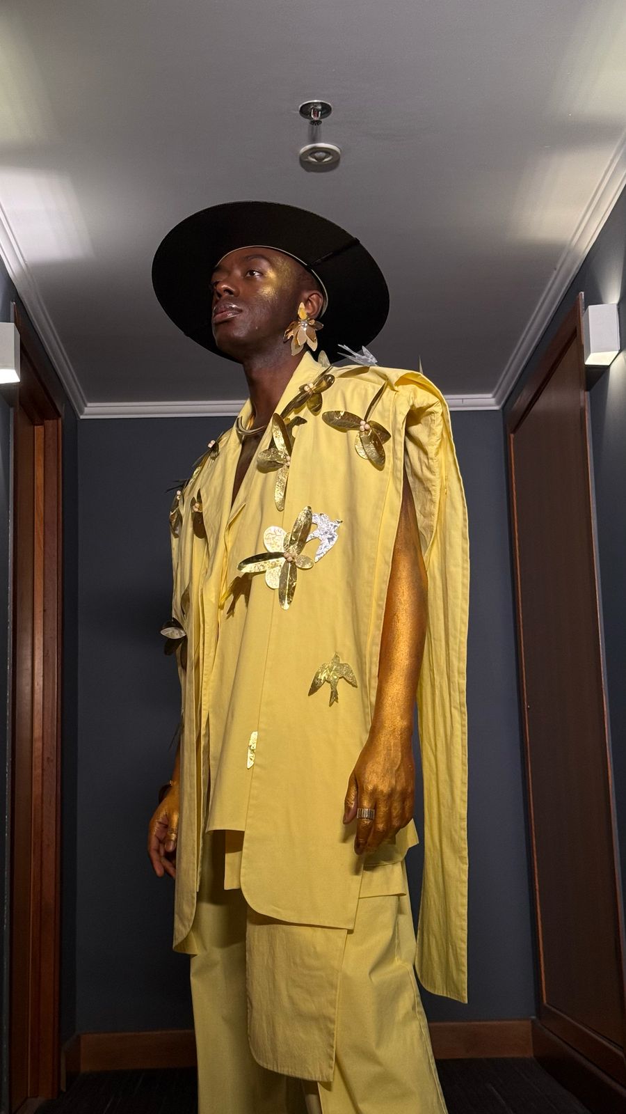 Inspirado no ícone Colman Domingo, o visual de Jota.pê também traz influências marcantes da era de Marvin Gaye e da sofisticação de Curtis Mayfield. Essa combinação de referências reforça não apenas o compromisso do artista com a inovação estética, mas também sua capacidade de traduzir a musicalidade e a história da moda em um único look arrebatador.