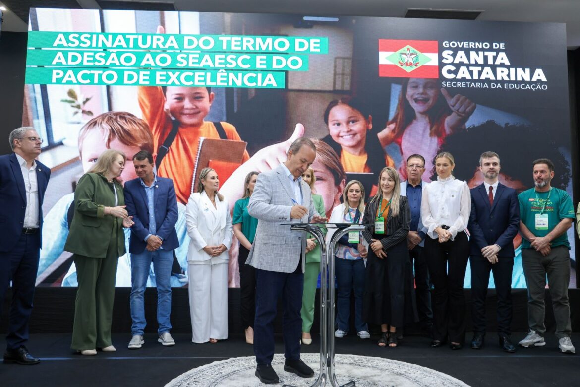 O Governo de Santa Catarina, por meio da Secretaria de Estado da Educação (SED), assinou nesta quinta-feira (2) o Pacto de Excelência pela Educação Pública, iniciativa que reúne os 100% dos municípios catarinenses em um regime de colaboração para fortalecer a educação pública em todo o estado.